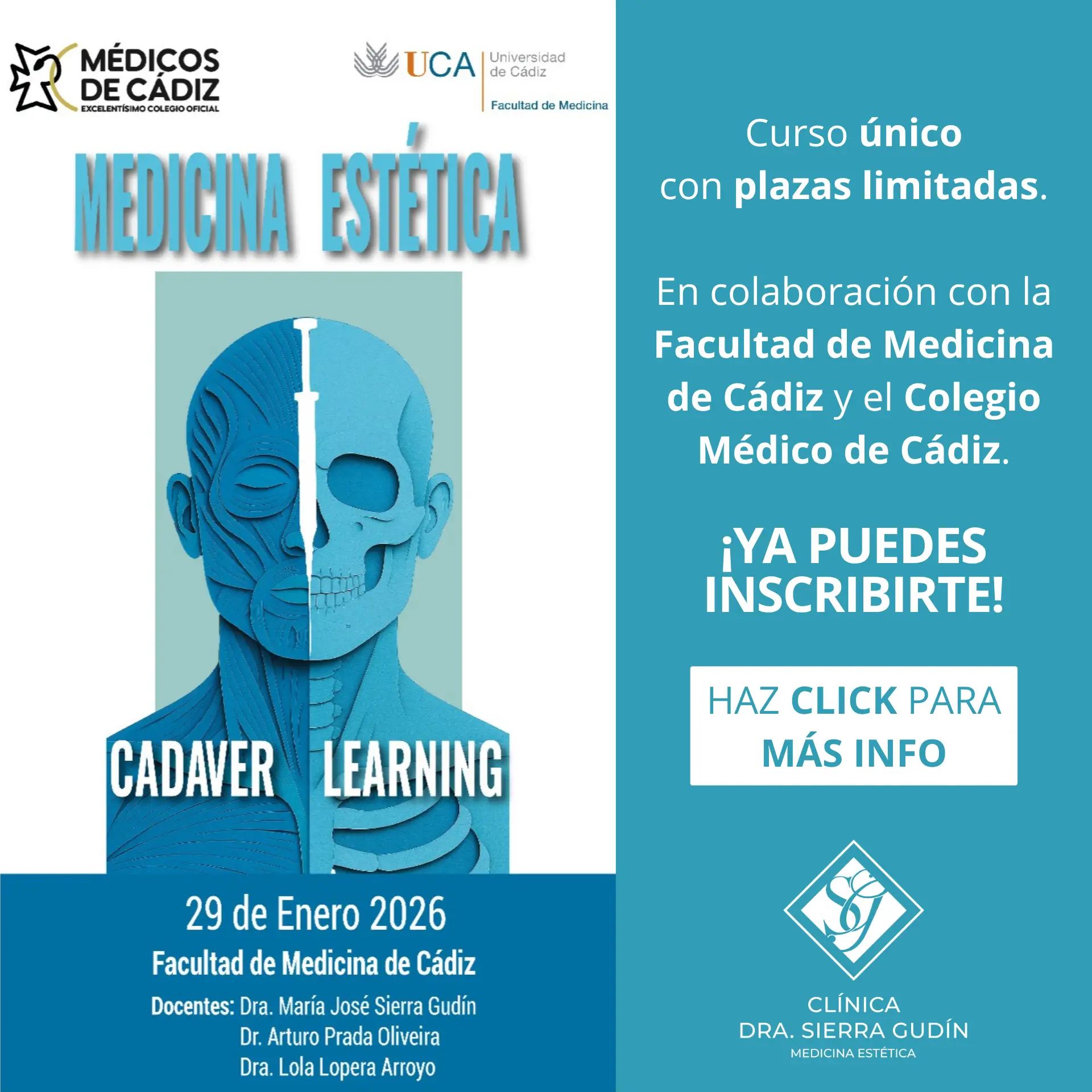 La Dra. María José Sierra Gudin, destacada médica estética y directora de Clínica Sierra Gudín, fusiona su amplia formación con una trayectoria ejemplar. Con experiencia en el Hospital Carlos Haya de Málaga y especialización en medicina familiar, posee un Máster en Nutrición y otro en Medicina Estética, respaldados por la Universidad de Cádiz y Córdoba, respectivamente. Habilitada por el Colegio de Médicos de Cádiz, es miembro de la Sociedad Española de Medicina Estética. Su compromiso con la excelencia se refleja en la autorización para administrar BOTOX, otorgada por la Consejería de Salud.